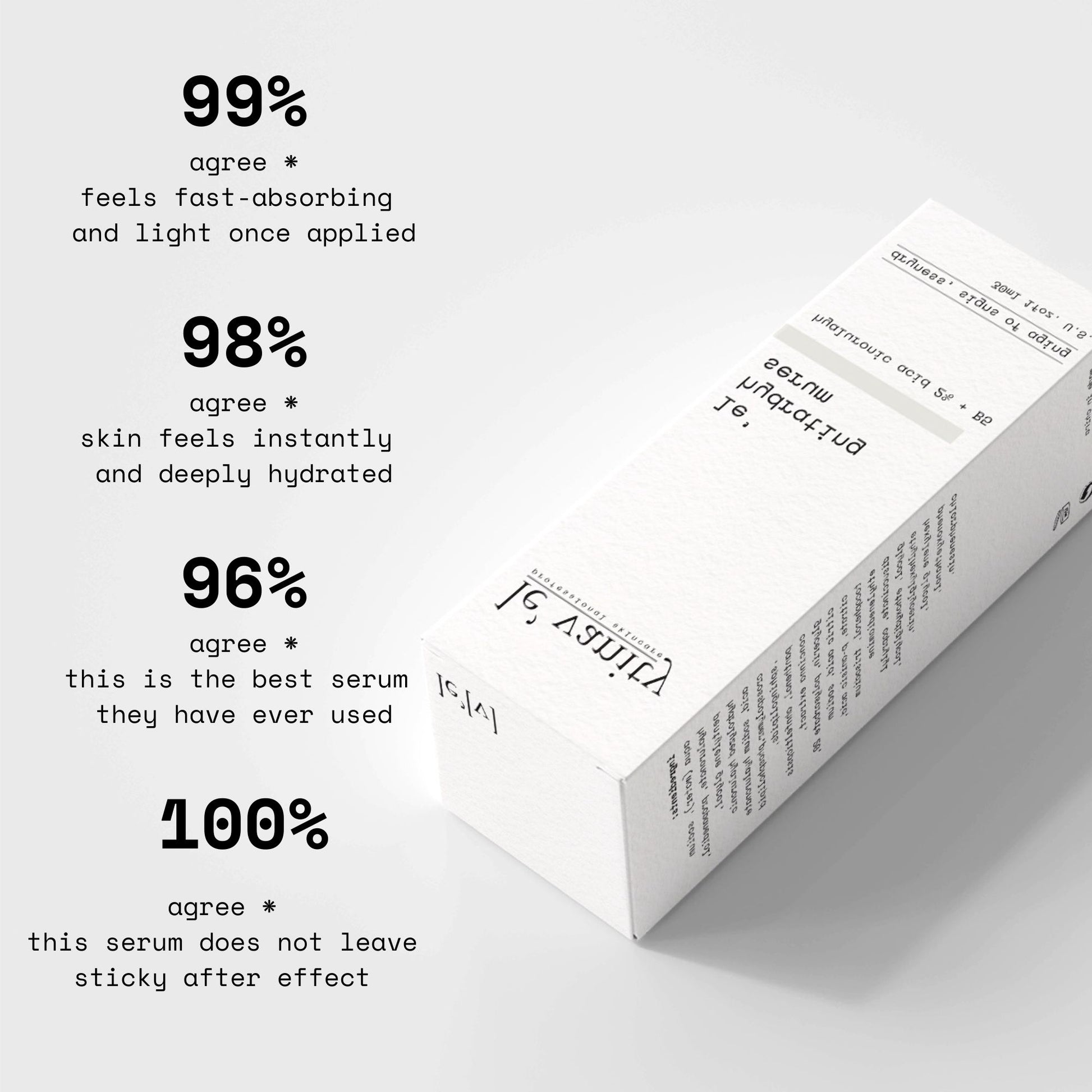 read moreformulated with a potent blend of high and low molecular weight hyaluronic acid, ceramides, and botanical extracts, our serum locks in moisture, smooths fine lines, and enhances skin elasticity. experience a significant boost in hydration levels and skin firmness, with visible improvements in skin texture and tone.
